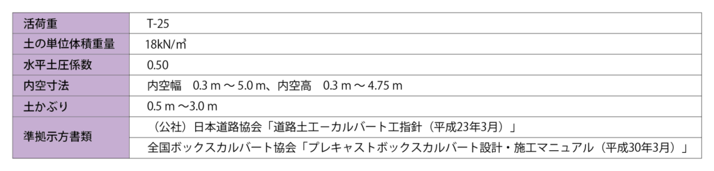 3. プレキャストボックスカルバート設計・施工マニュアル[全国ボックスカルバート協会 ]」に準拠しています。