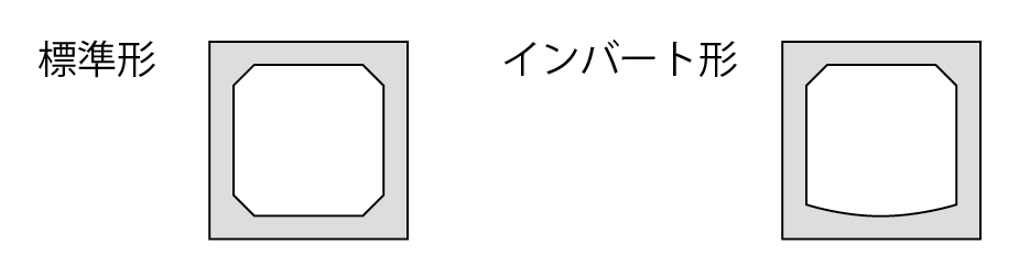 1) ボックスカルバートは断面形状により、標準形と、インバート形に区分されます。