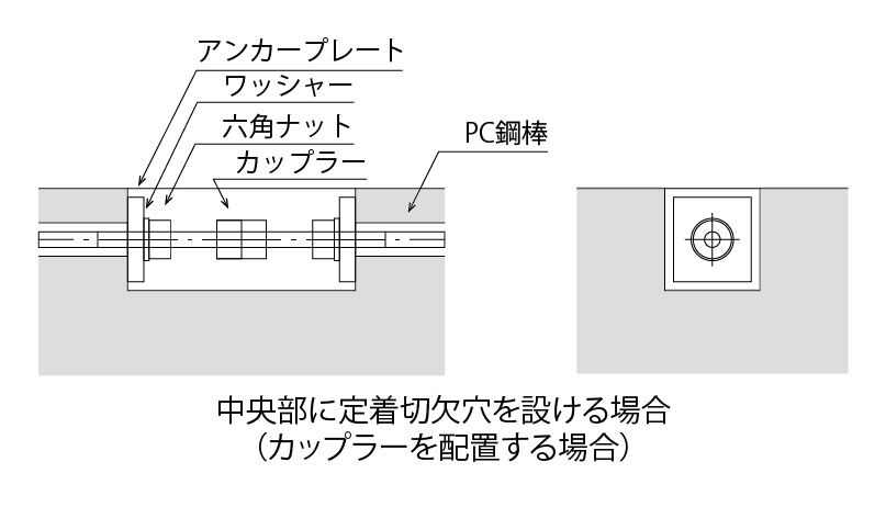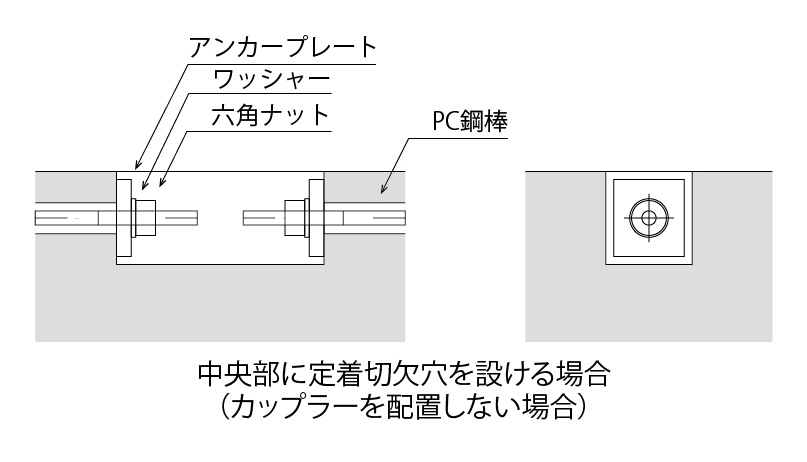 中央部に定着切欠穴を設ける場合(カップラーを配置しない場合)