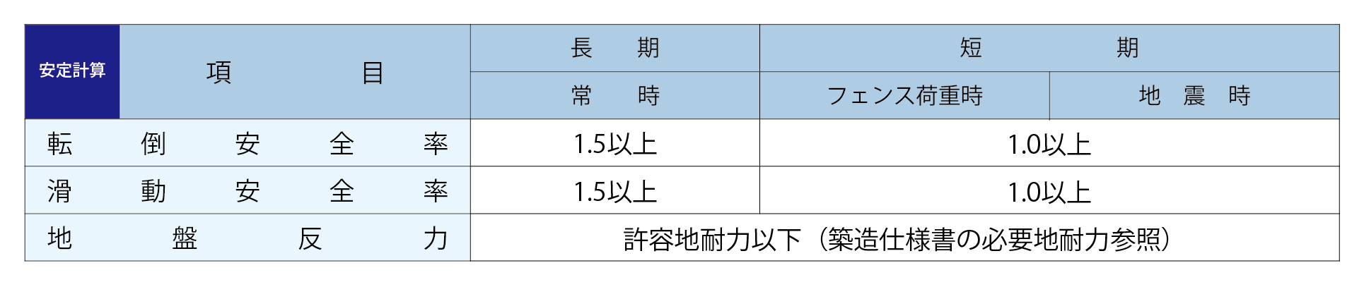 基礎地盤が内部摩擦角30度以上の場合、擁壁の高さの15/100以上かつ35cm以上