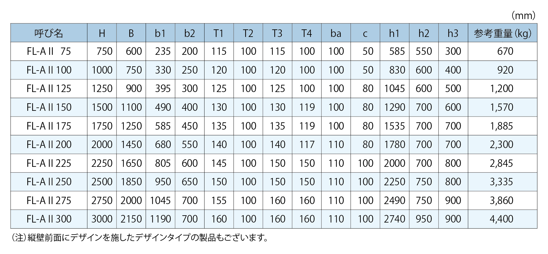 - 前壁にデザインを施す場合の凹凸は、標準規格寸法の範囲外とする。