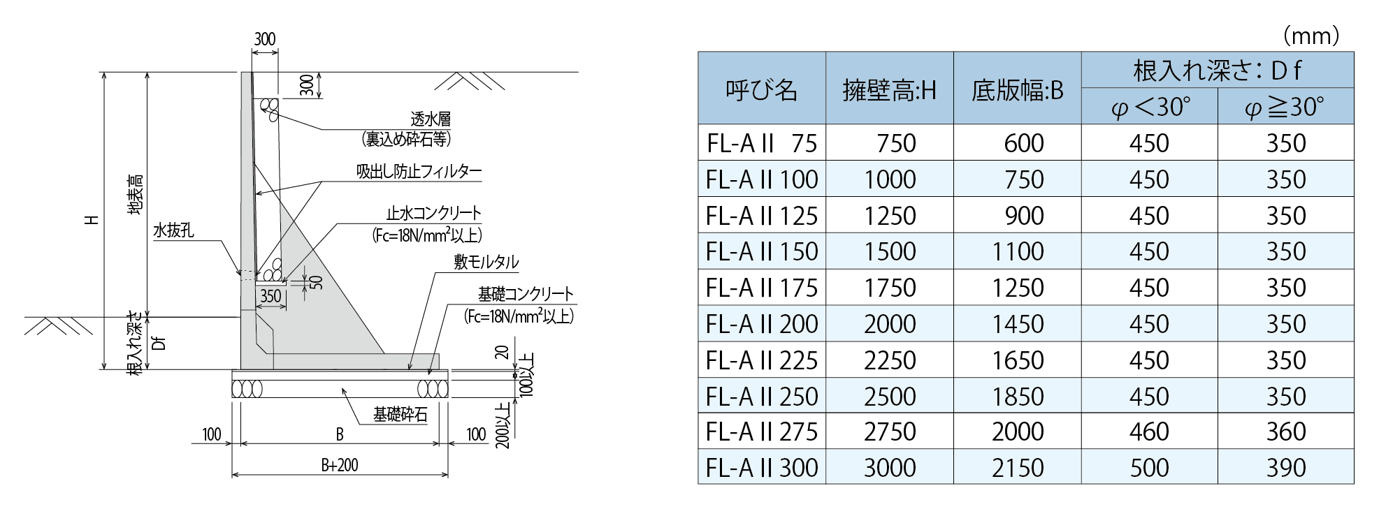 L型擁壁 FL-AⅡ国土交通大臣認定 宅造用法止ブロック