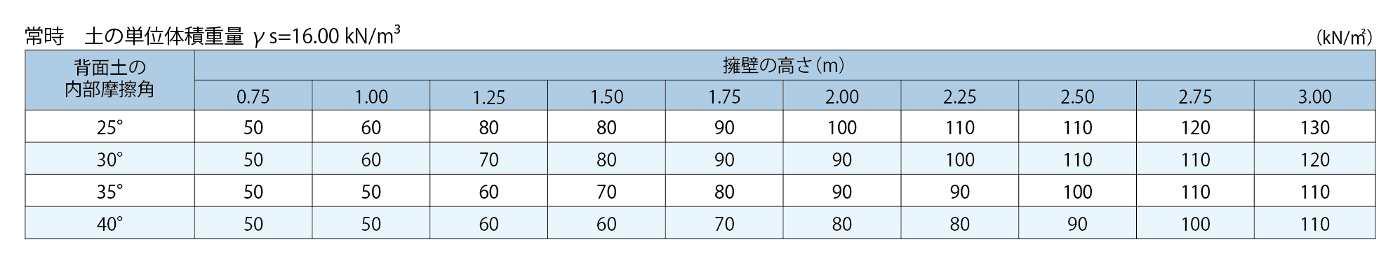 - 常時 土の単位体積重量 γs=16.00 kN/m³