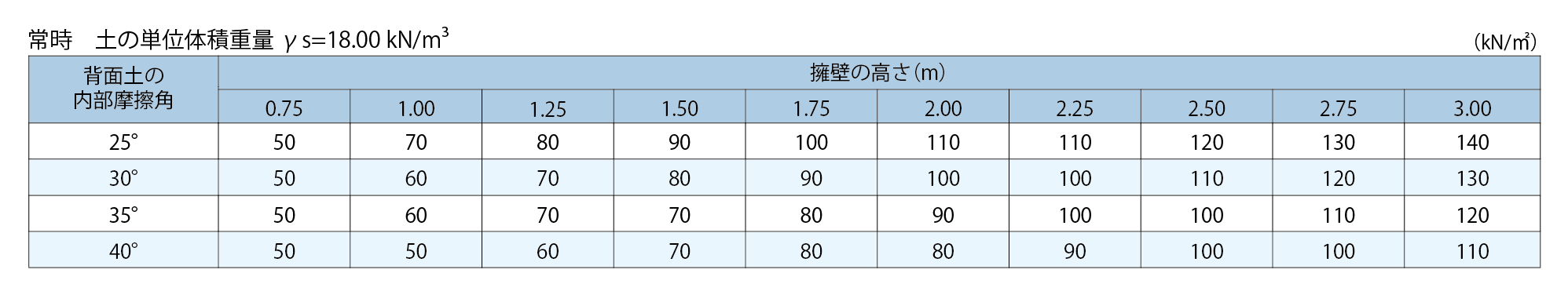 - 常時 土の単位体積重量 γs=18.00 kN/m³