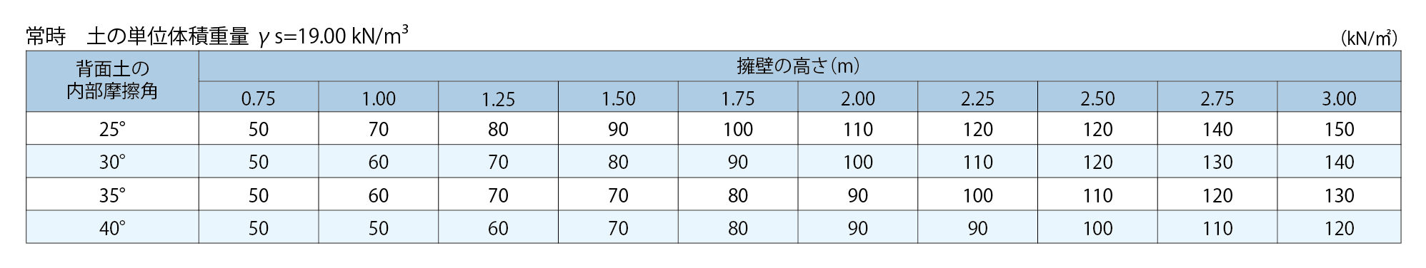 - 常時 土の単位体積重量 γs=19.00 kN/m³