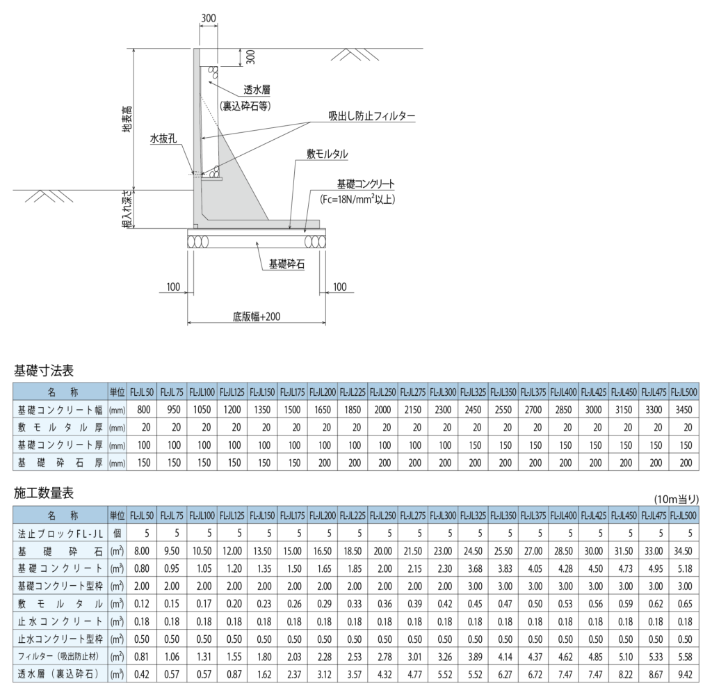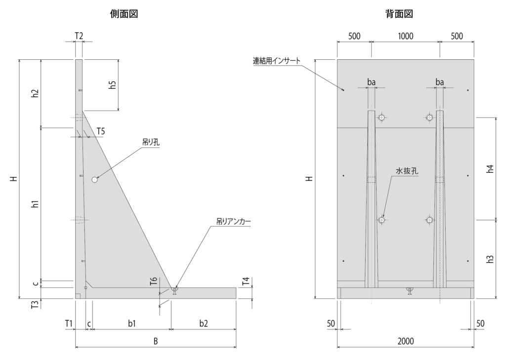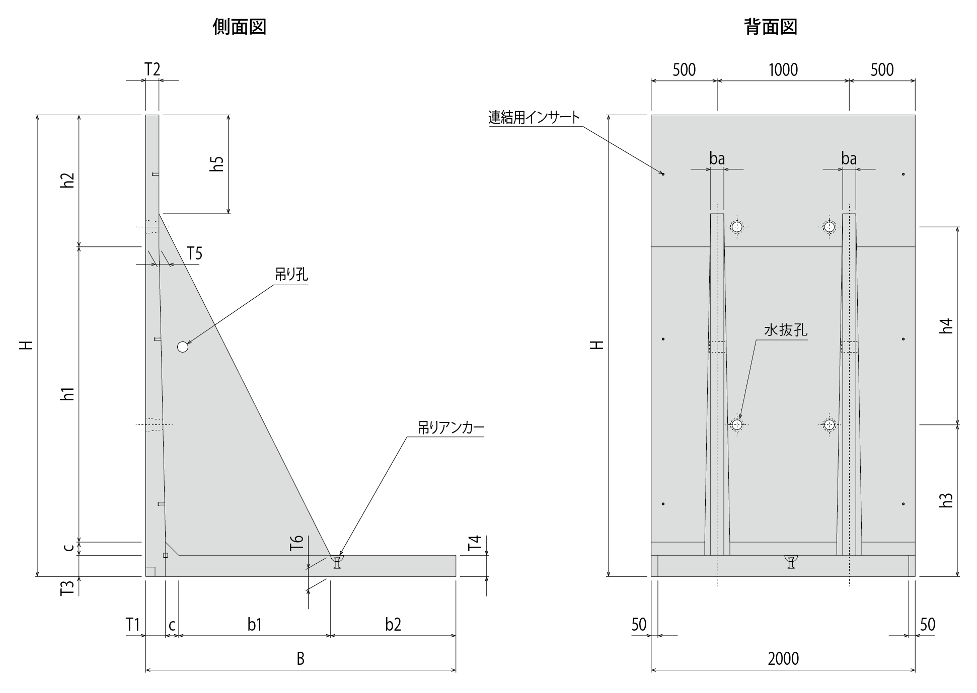 高さ5.0mまでの汎用性の高い道路用L型擁壁です。