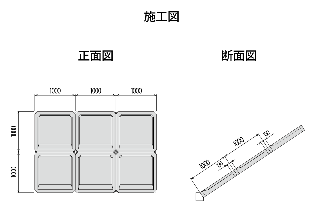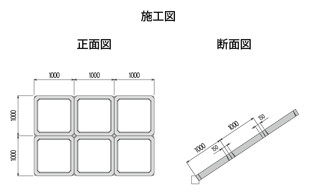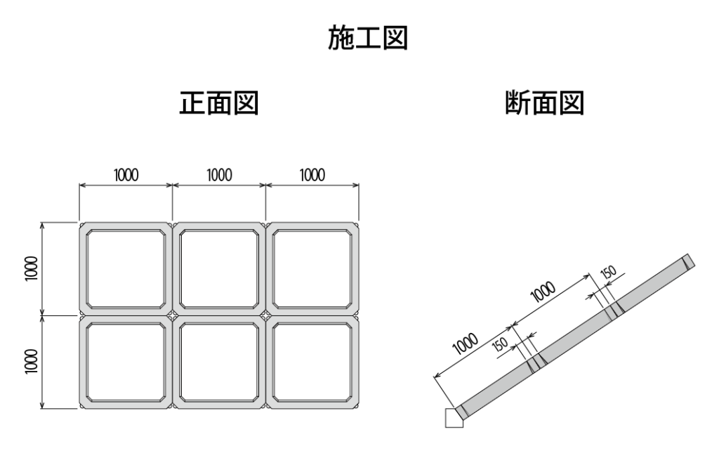 プレキャスト枠工は切土・盛土法面表層部の保護(浸食・風化・表層滑落防止)が図れます。