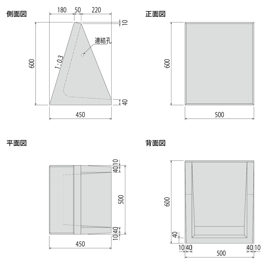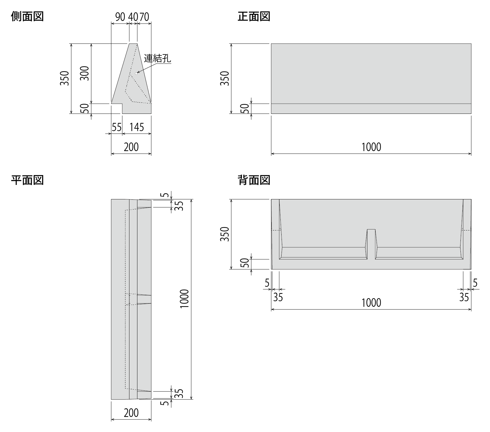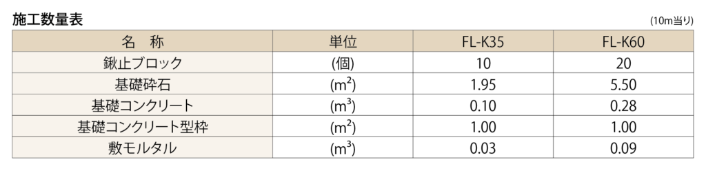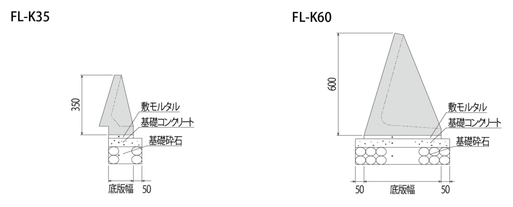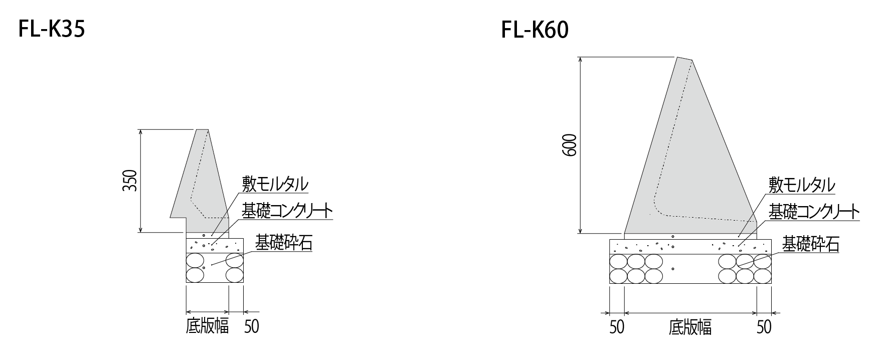 鍬止ブロック型枠工事が不要で工期短縮が可能な小型ブロック 人力から小型の重機で施工が可能な小型の土留めブロックです。 PDFダウンロードはこちら 製品寸法図FL-K35 参考重量:62kg 継ぎ鉄筋:φ6mm FL-K60 参考重量:89kg 継ぎ鉄筋:φ6mm 規格表 お問い合わせはこちら