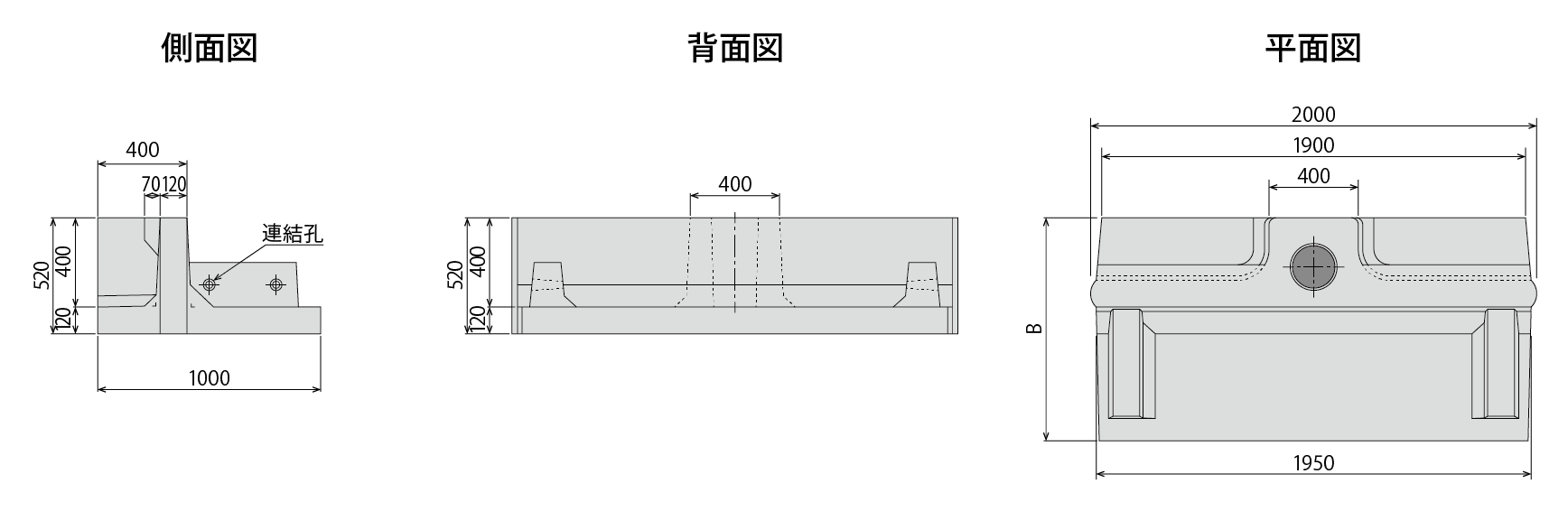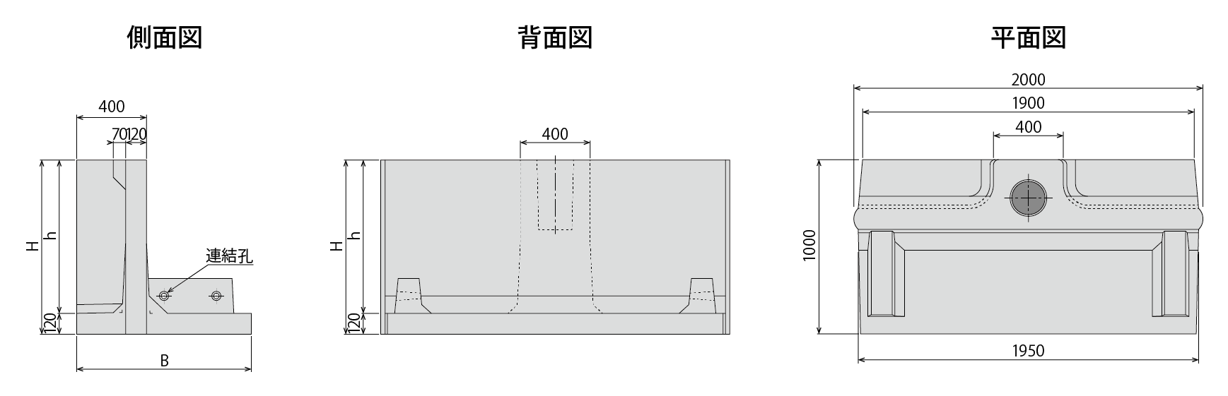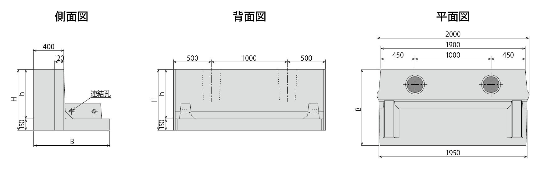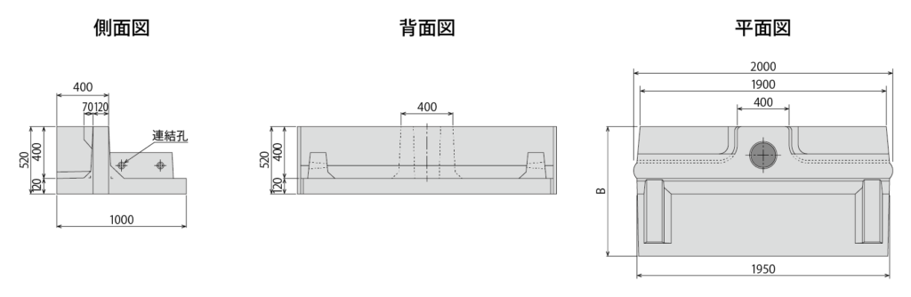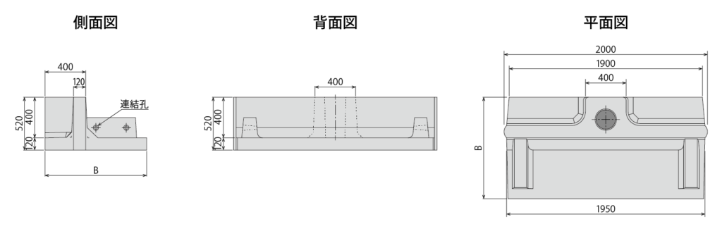 このようなことから、全ての擁壁に設置できるように、分離構造とし擁壁設置後に、擁壁上に設置できるようにしました。