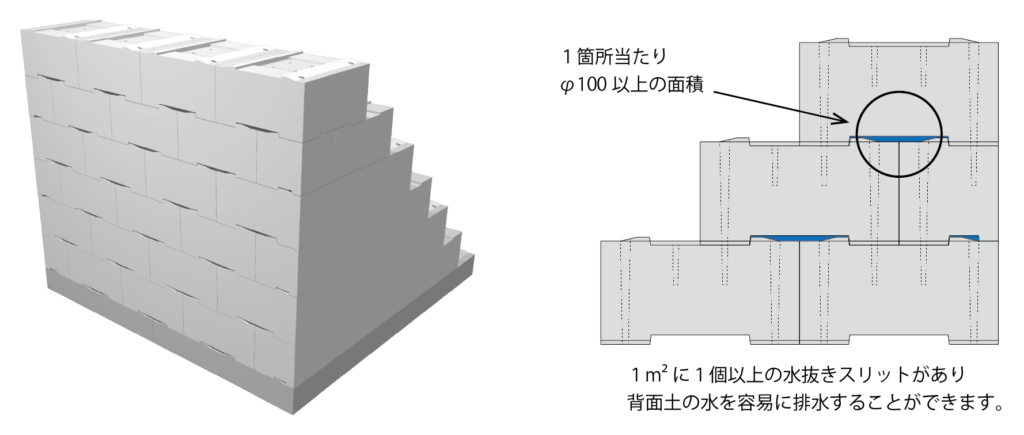 1. 製品を積み上げることにより、土留め擁壁としての効果があります。