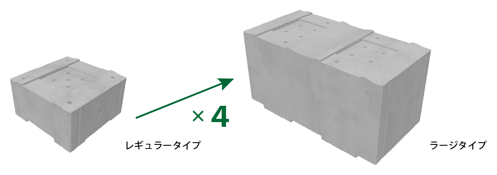使用する現場・用途に応じて製品1個当たりの大きさが異なるレギュラータイプ・ラージタイプをラインナップしています。